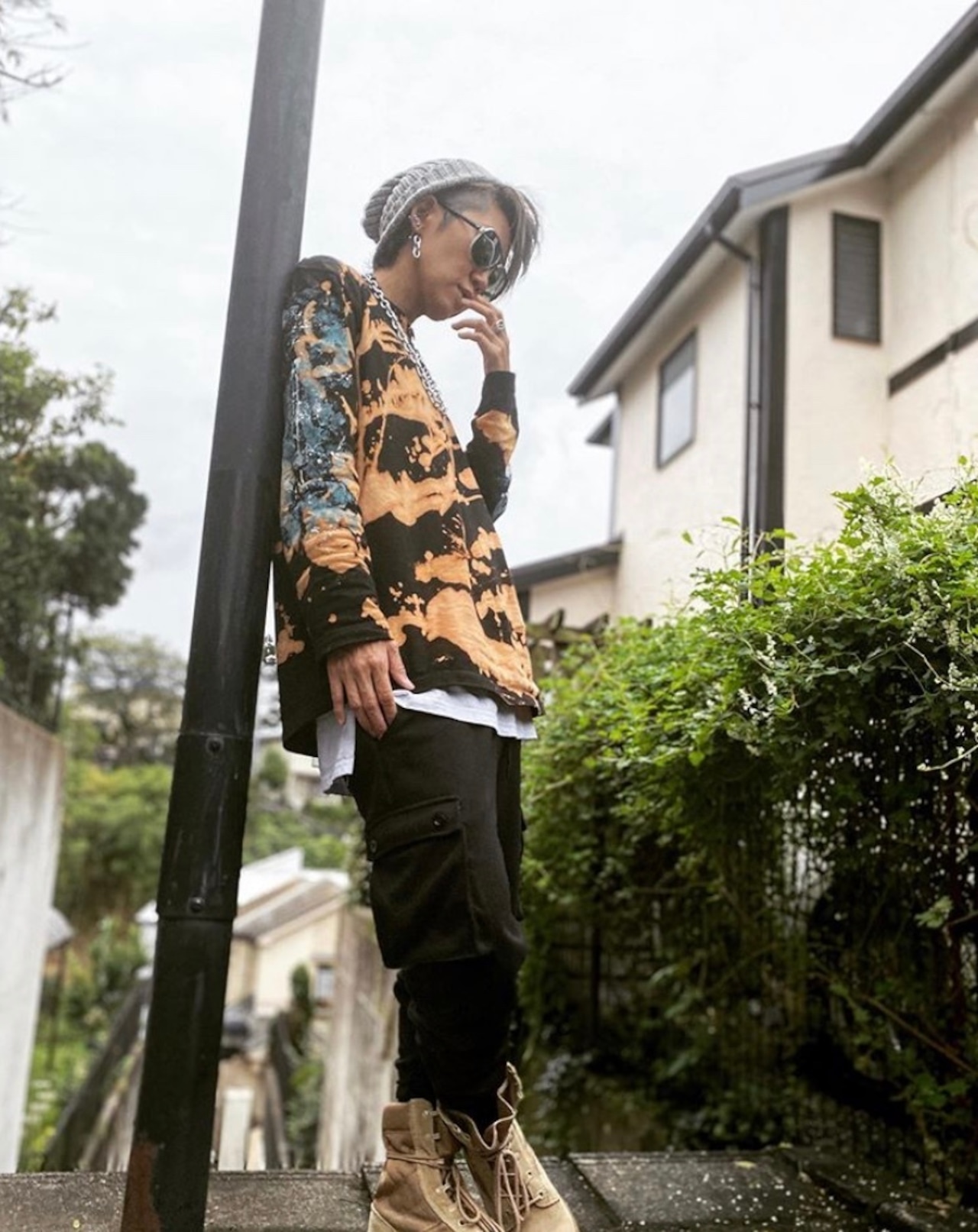 ブリーチタイダイ袖ペイントロンT