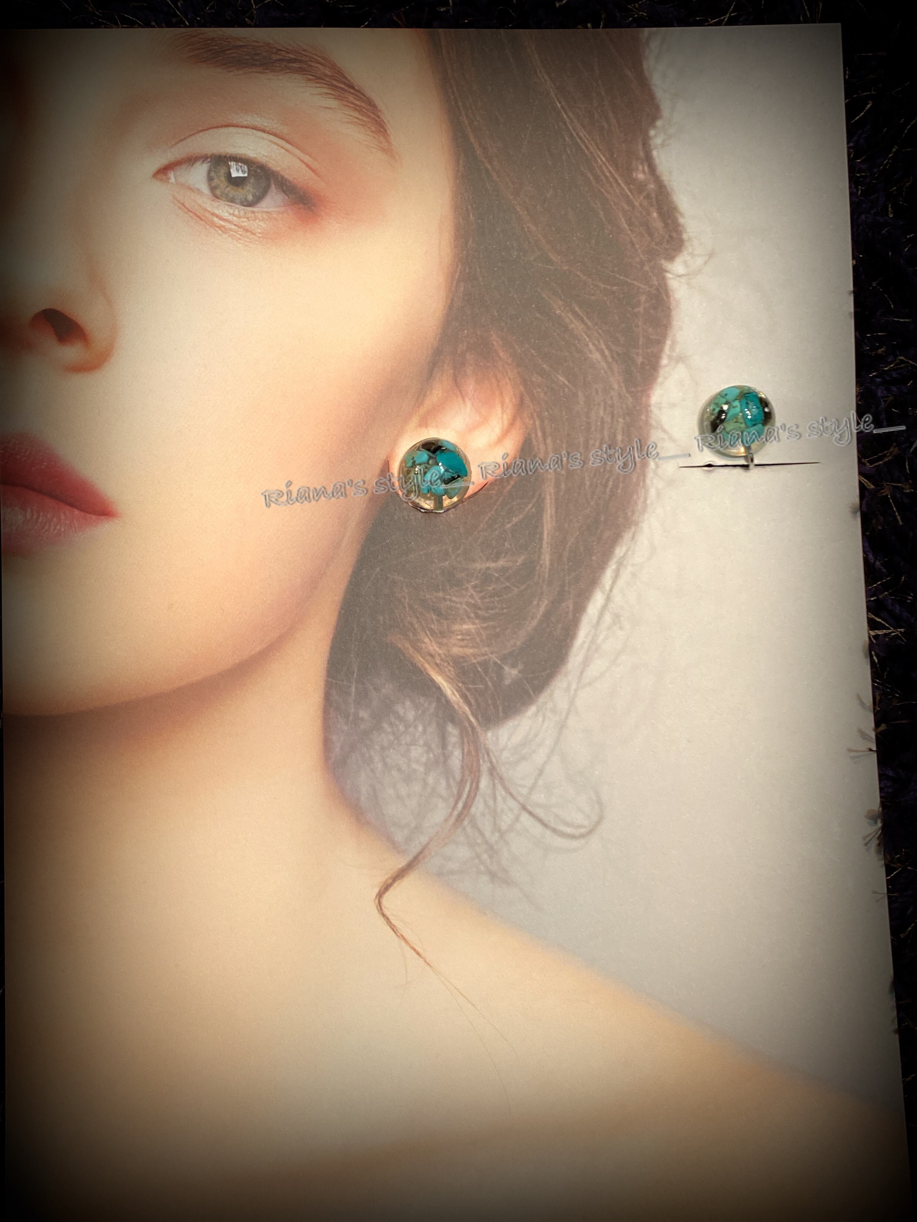 ターコイズを敷き詰めたイヤリング。